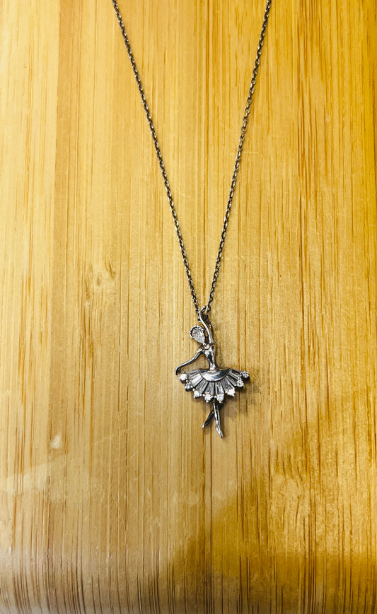 Kusuz Sterling Silver Ballerina Necklace – Rhodium-Plated with CZ Crystals