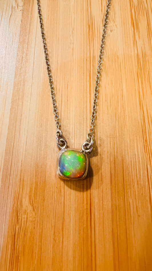 Kusuz Sterling Silver Opal Necklace – Minimalist Natural Stone Pendant