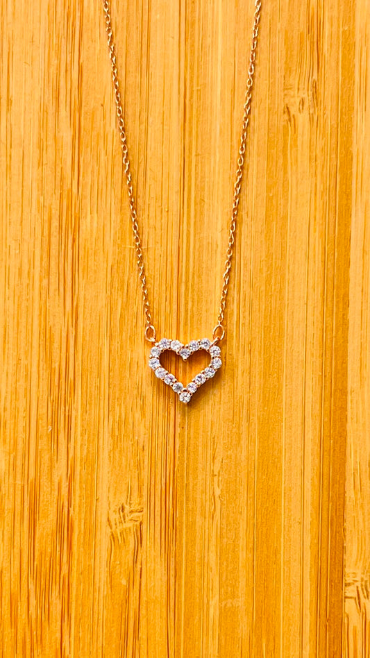 Kusuz Rose Gold Heart Necklace – Sterling Silver Base with CZ Crystals