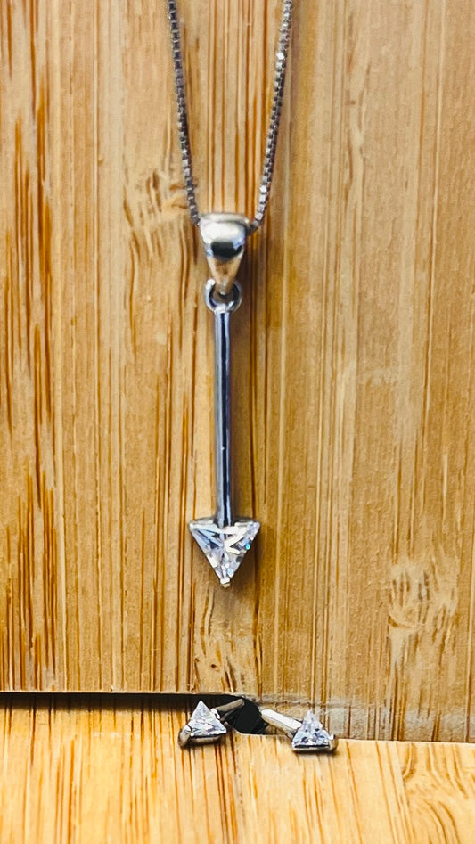 Kusuz Sterling Silver Arrow Jewelry Set – With CZ Crystals (Necklace & Earrings)