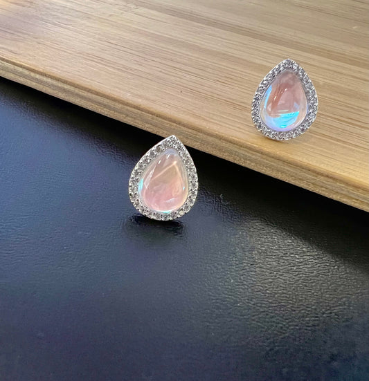 Sterling Silver Pink Teardrop CZ Studs Earrings